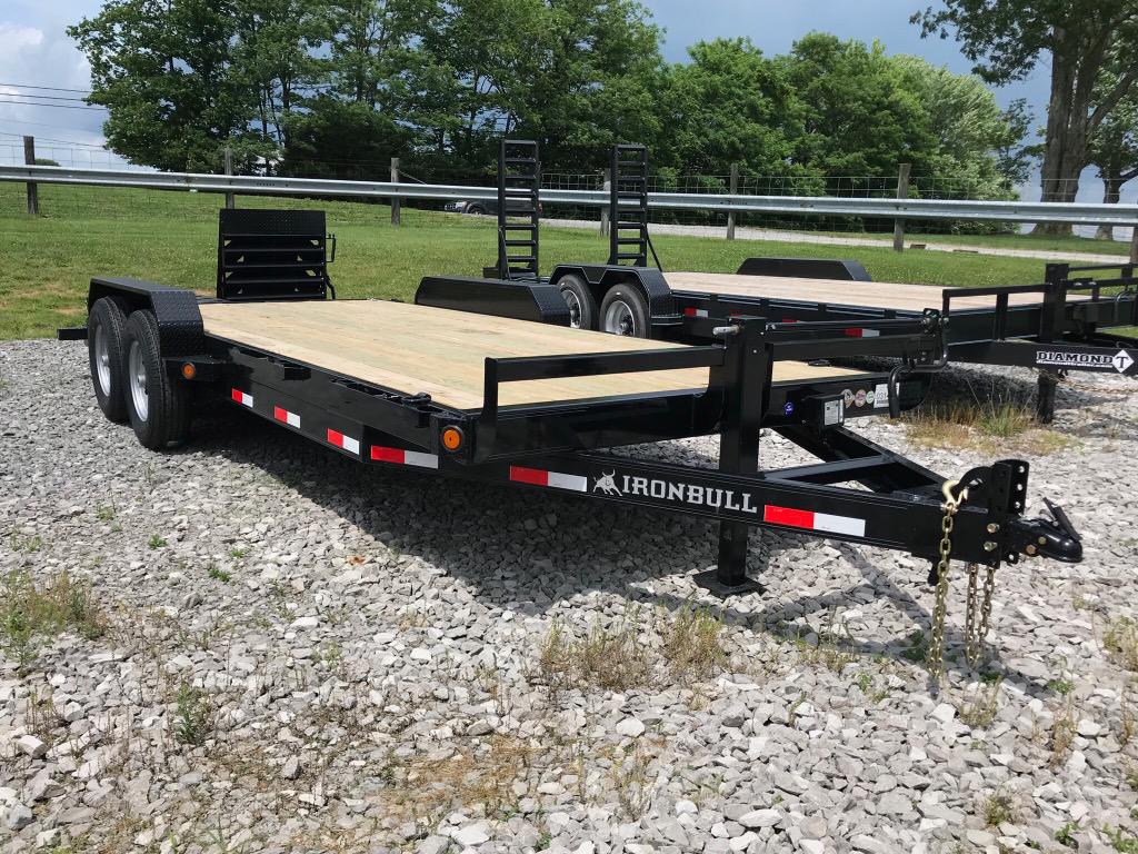 Size pictured is 32'x8 1/2' - other sizes are available Trailer includes: 10k Dexter oil bath axle D rings, pipe spools in rub rail 19#/ft I Beam frame 3” channel crossmembers Rampage ramps (equal full width of trailer)
