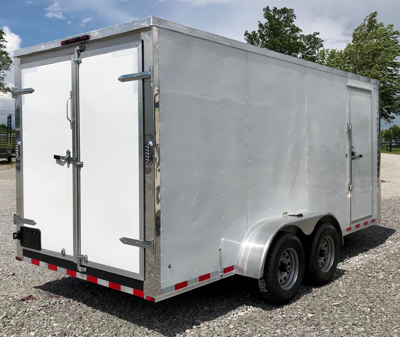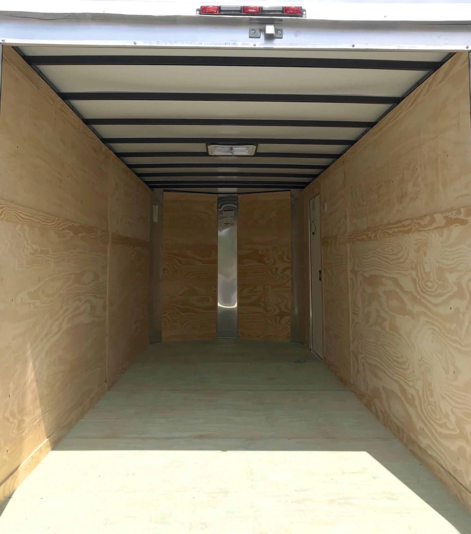 Trailer Includes: 5200# Dexter Axles 6 1/2’ interior height RV style side door with bar lock 12” extended tongue 4 wheel brakes Double door wheel .030 skin